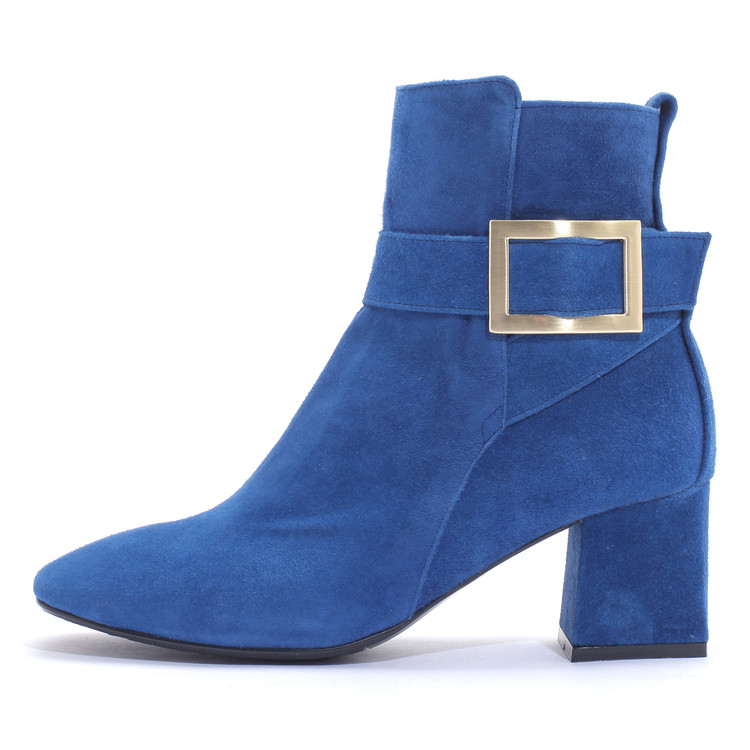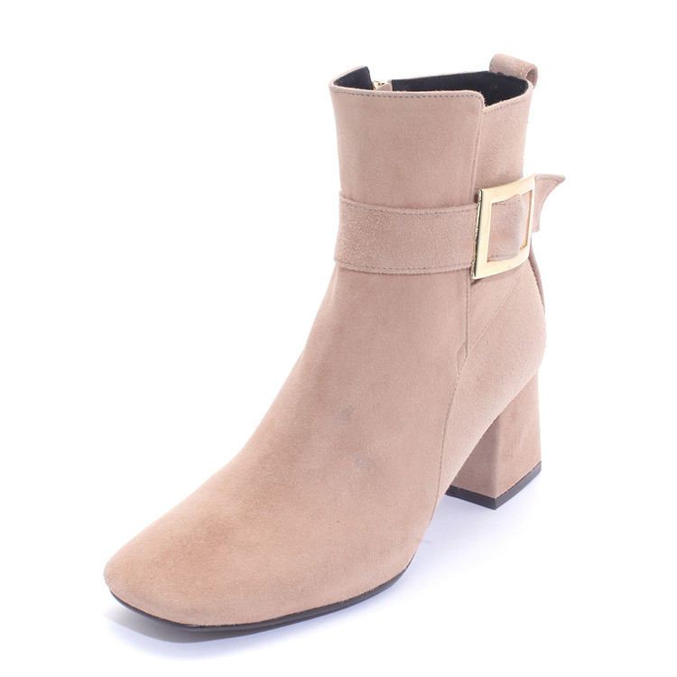 세라 양가죽 세무 스퀘어장식 앵클부츠 S22A502
