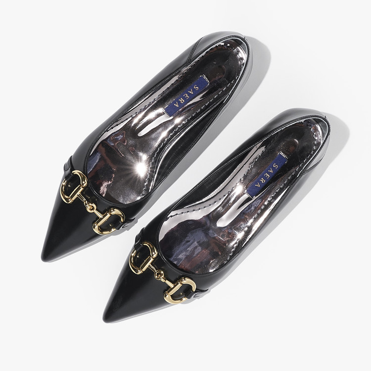 세라 에디션 펌프스 스틀레토 소가죽 골드버클 블랙 S22P514