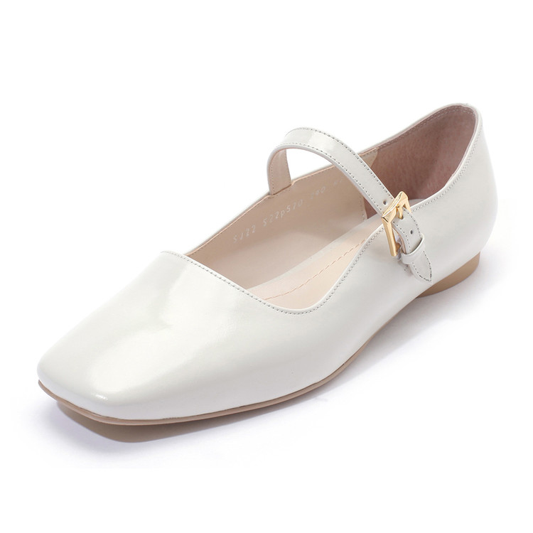 세라 에디션 플랫 스퀘어토 소가죽 메리제인 아이보리 S22P520