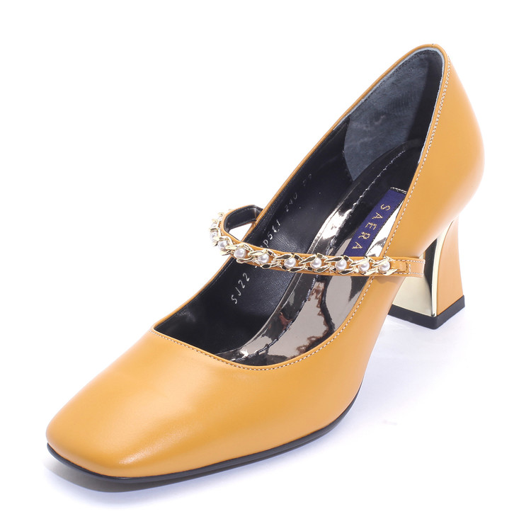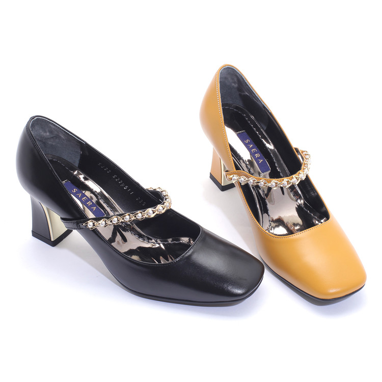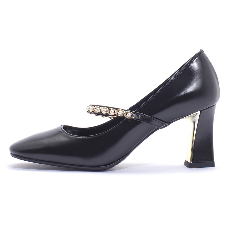 세라 에디션 펌프스 스퀘어토 소가죽 진주체인 블랙 S22P511