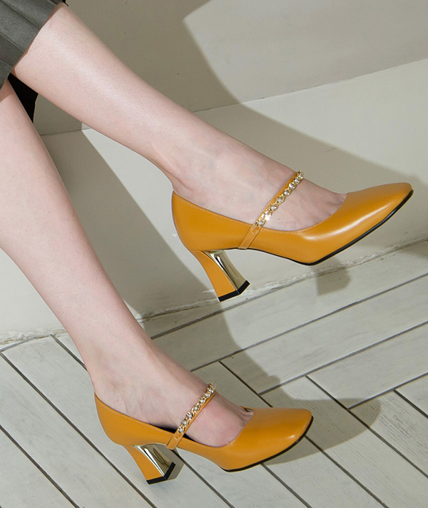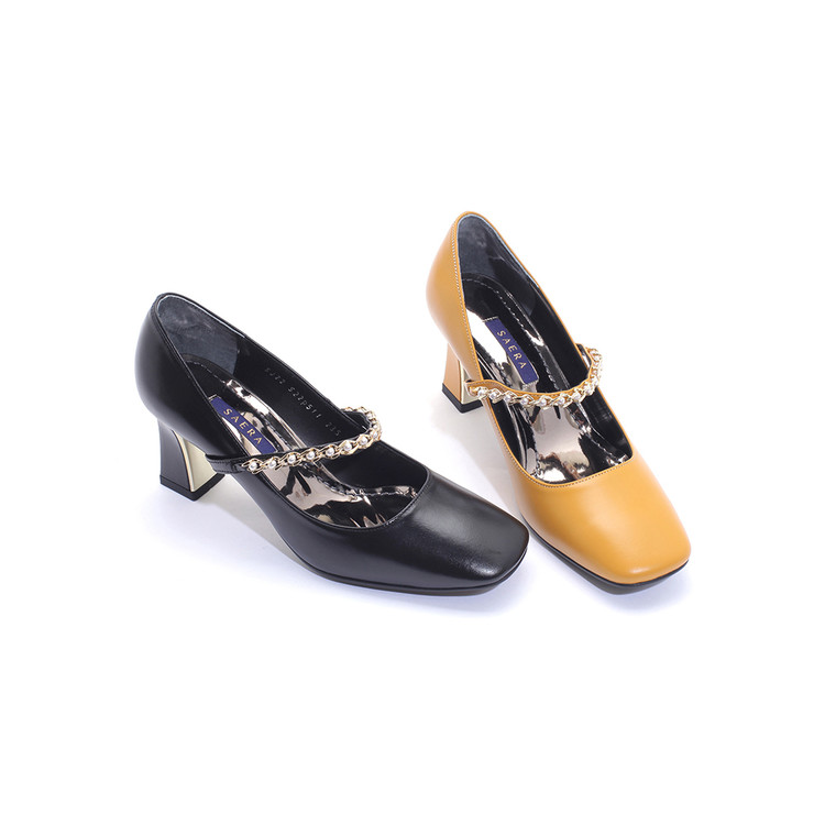 세라 에디션 펌프스 스퀘어토 소가죽 진주체인 S22P511