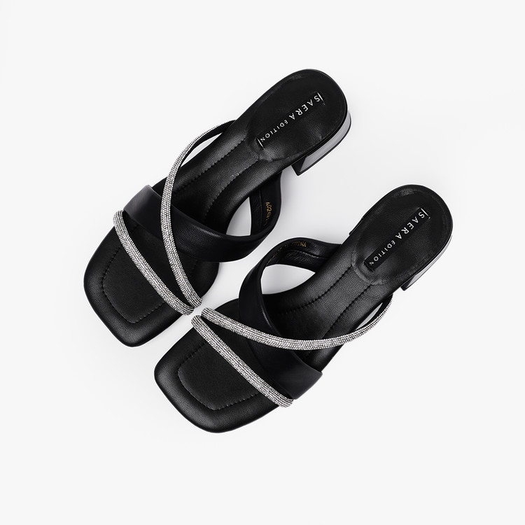 세라 에디션 슬라이드 가죽 뮬 블랙 O24M119