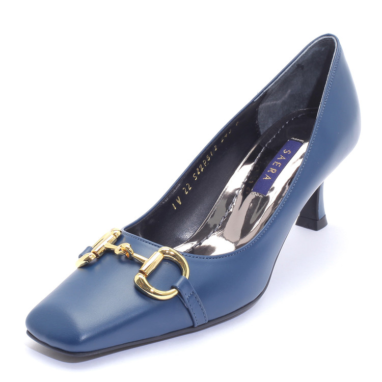 세라 펌프스 스퀘어토 소가죽 골드버클 블루 S22P512