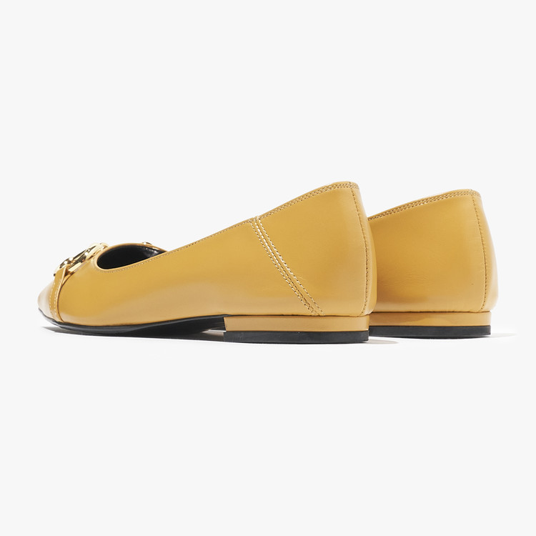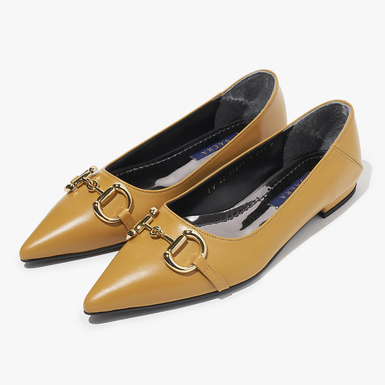 세라 에디션 펌프스 스틀레토 소가죽 골드버클 머스타드 S22P514