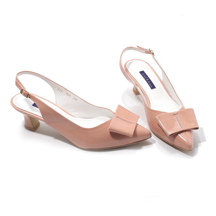 세라 에디션 슬링백 스틸레토 고트레더 사각리본 A22G404