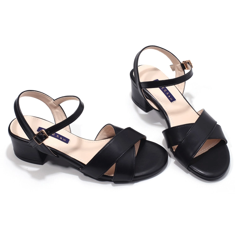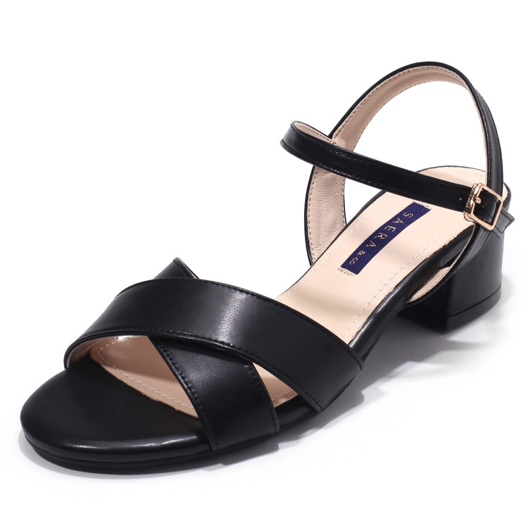 세라 와이드 크로스 앵클 스트랩 미들힐 샌들 블랙 K56S402SALE